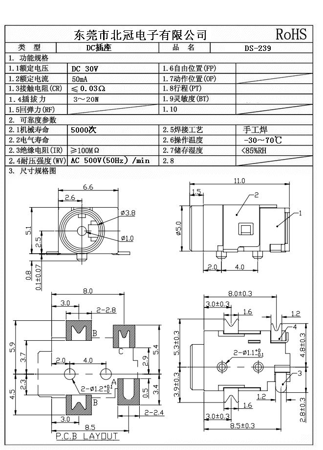 1. Rating : DC 30V 0.5A