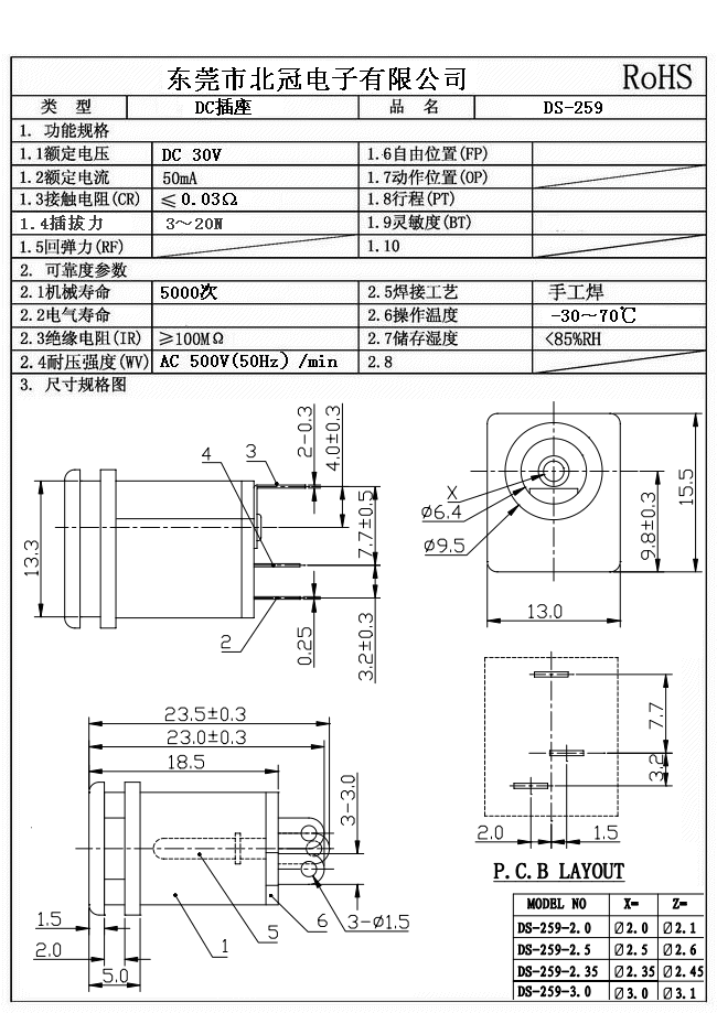 1. Rating : DC 30V 0.5A