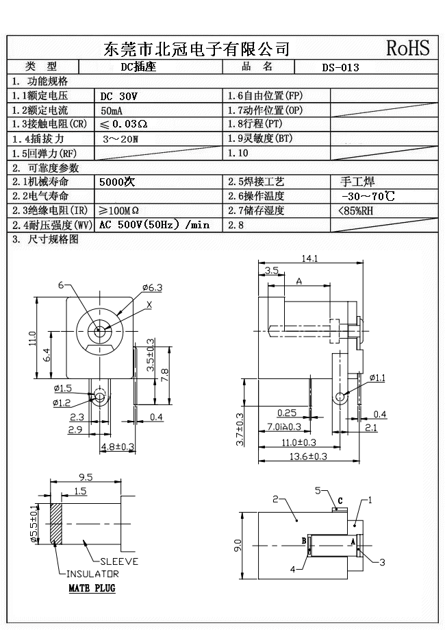 1. Rating : DC 30V 0.5A