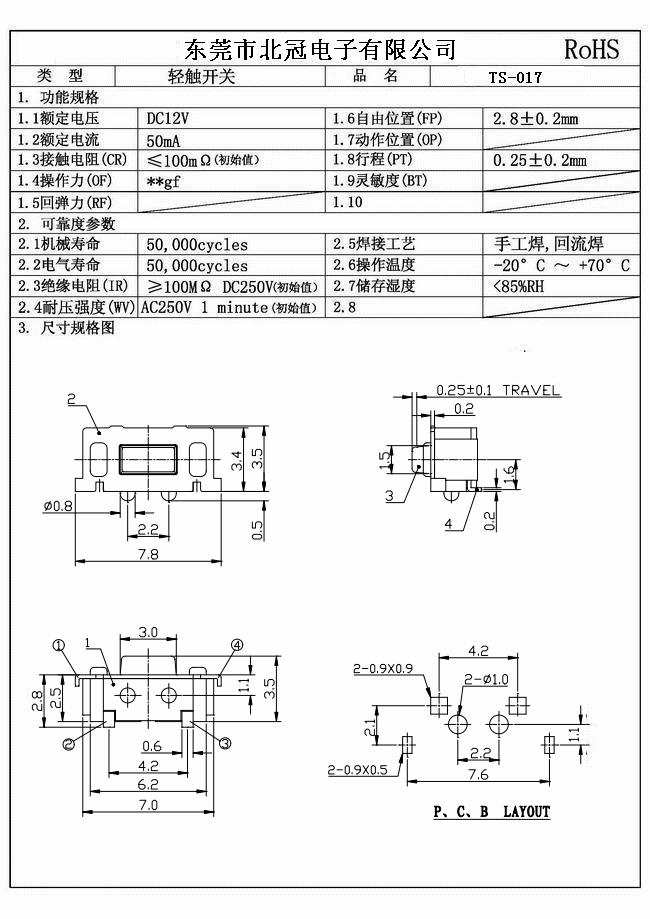 產(chǎn)品名稱:TS-017輕觸開關(guān)
