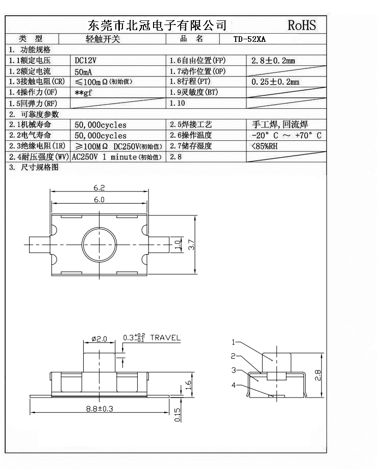 產品名稱:TD-52XA輕觸開關