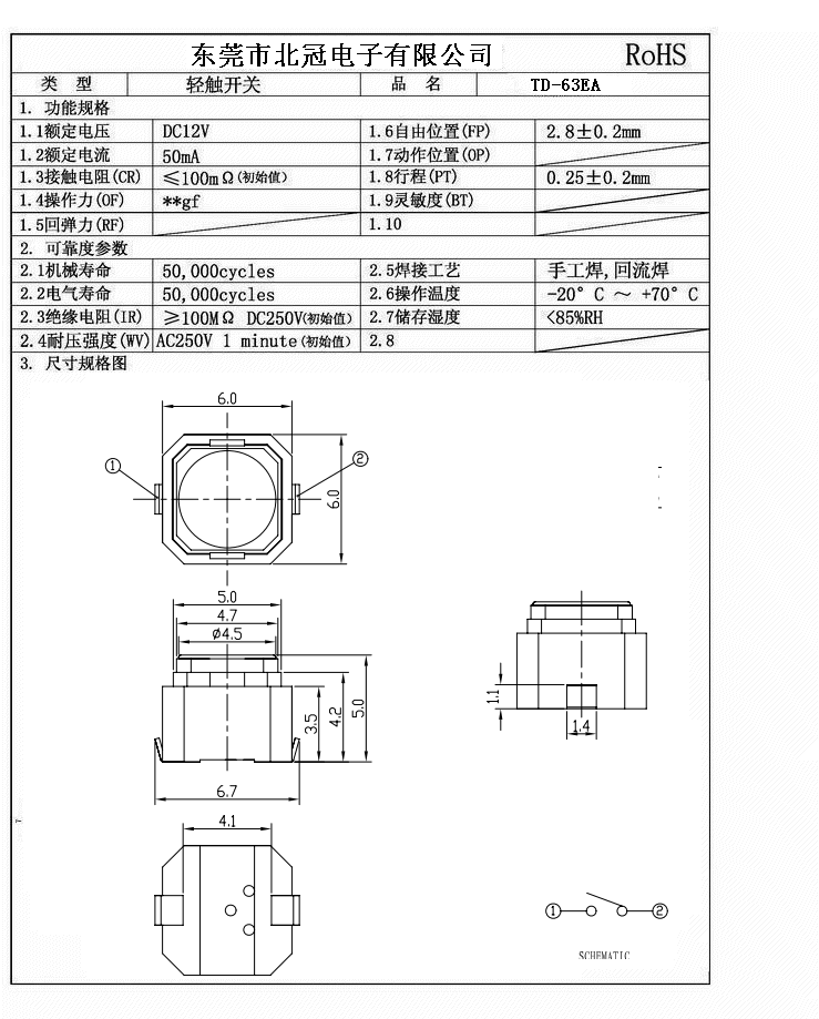 3.Lnsulation Resistance: ≥100mΩ DC250V