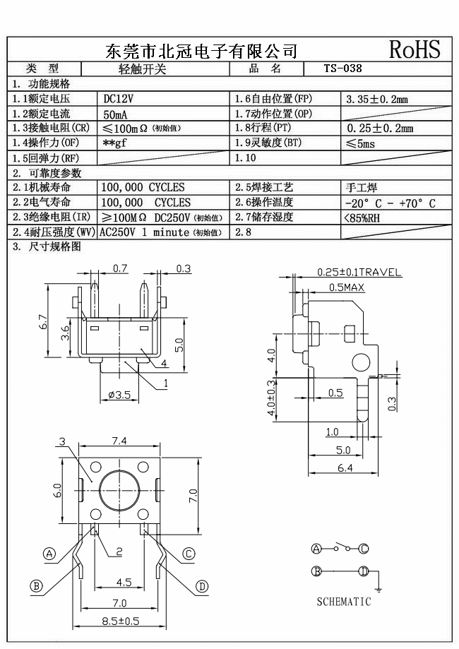 3.Lnsulation Resistance: ≥100mΩ DC250V
