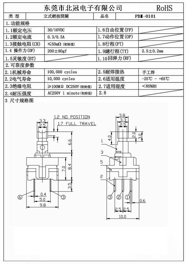 產(chǎn)品名稱:PBM-0101按鍵開關(guān)