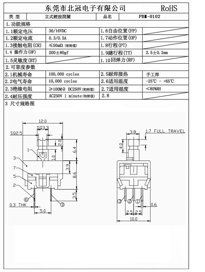 3.Lnsulation Resistance: ≥100mΩ DC500V