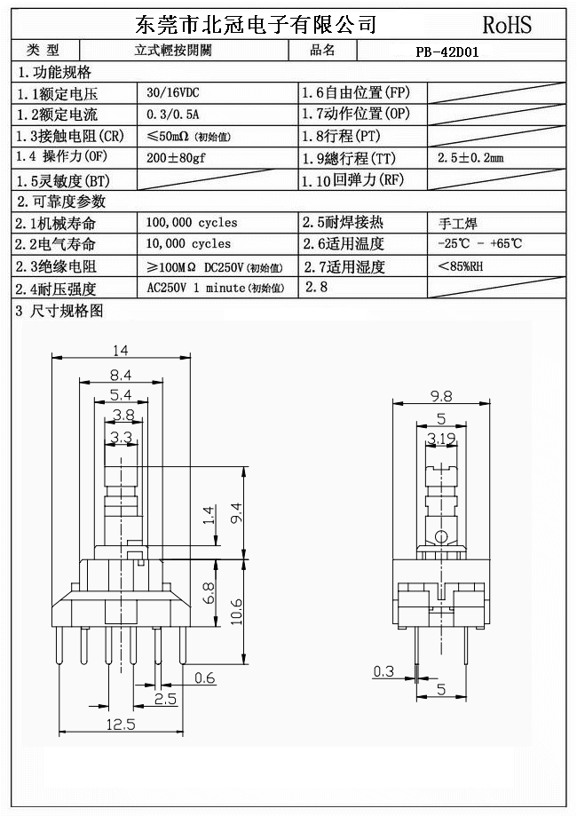 3.Lnsulation Resistance: ≥100mΩ DC500V