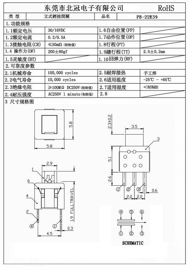 3.Lnsulation Resistance: ≥100mΩ DC500V