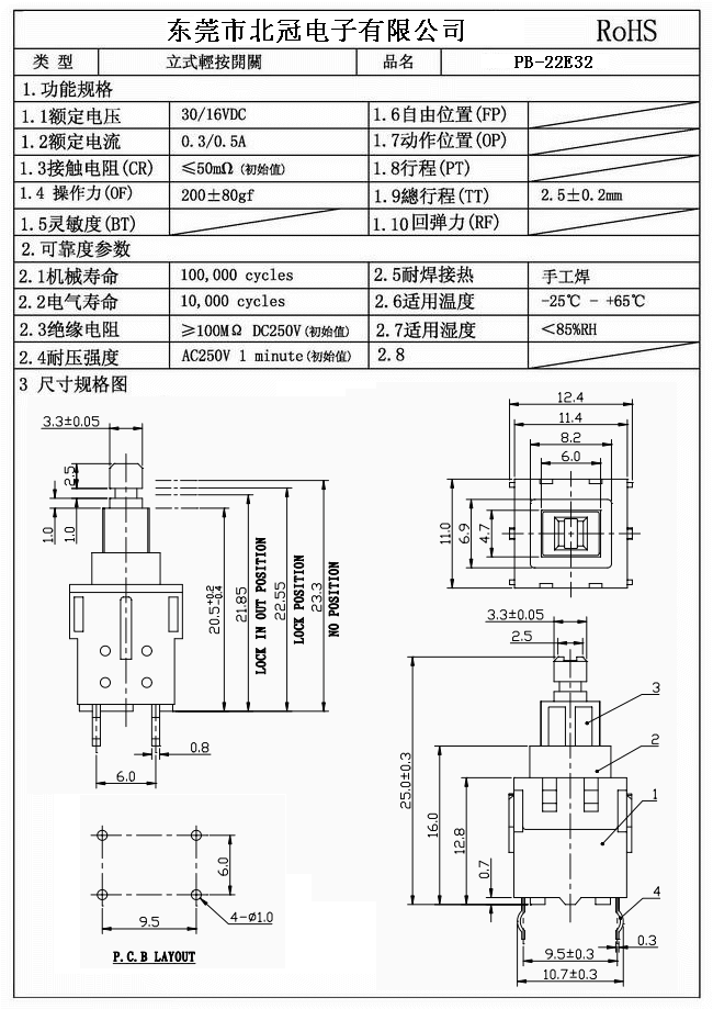3.Lnsulation Resistance: ≥100mΩ DC500V