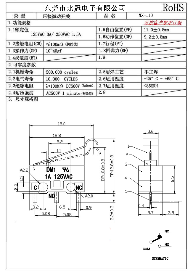 6.Mechanical Life: 100,000Cycles