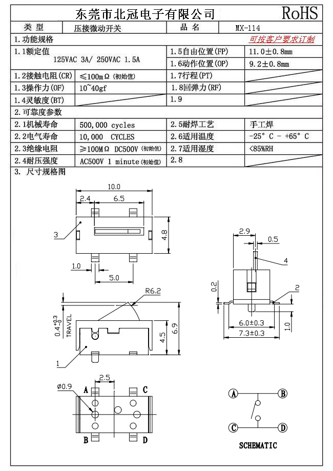 3.Lnsulation Resistance: ≥100mΩ DC500V