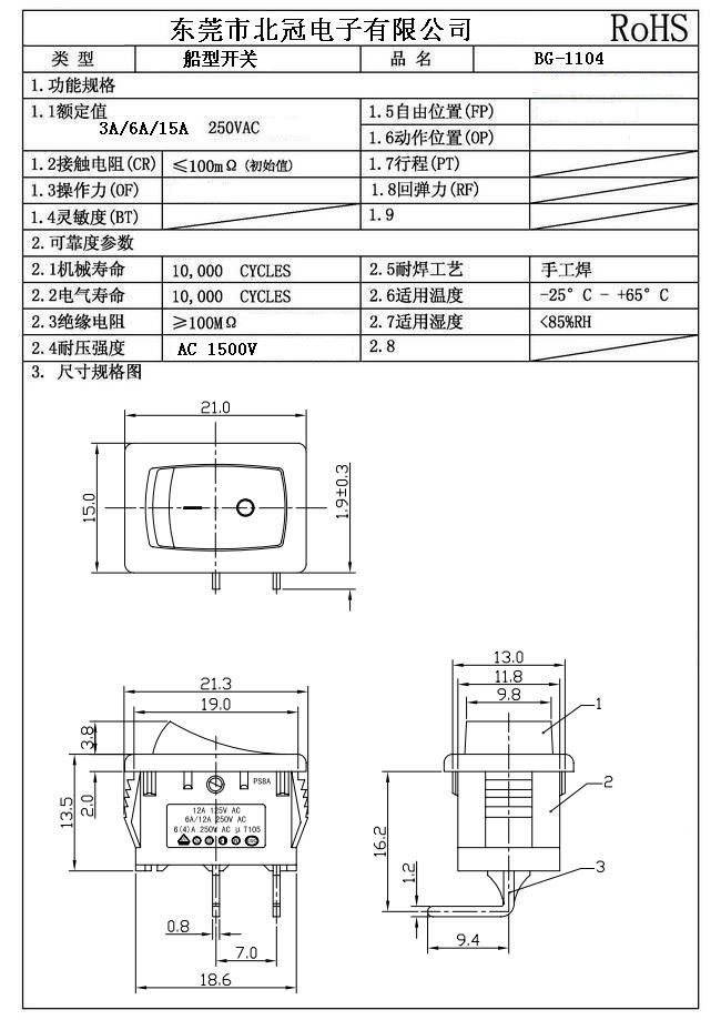 介電強度:≥1800VAC/3S