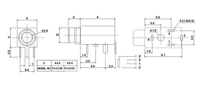 耳機插座技術參數: