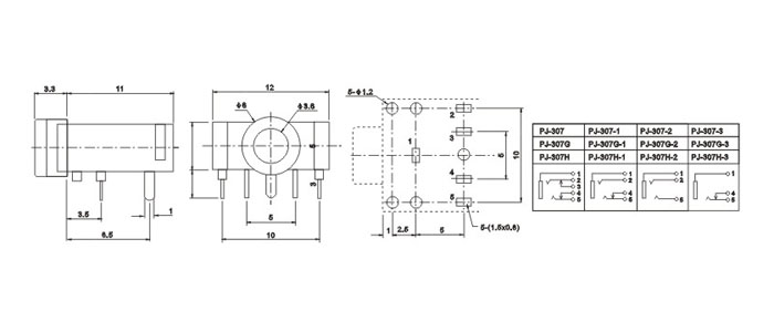 耳機插座技術參數: