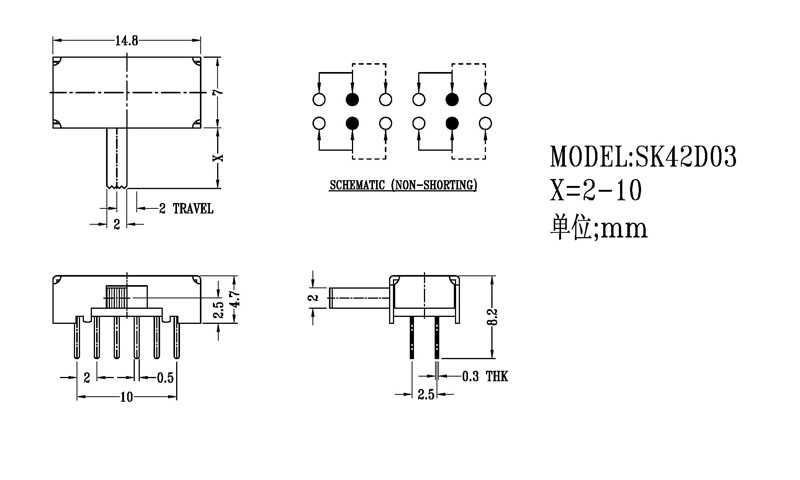 撥動開關(guān)主要技術(shù)參數(shù)/Slide Switch Main data