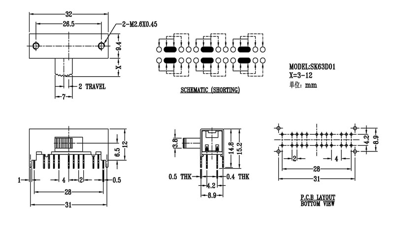 撥動開關主要技術參數/Slide Switch Main data