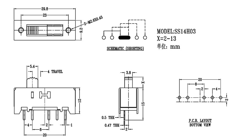 撥動(dòng)開關(guān)主要技術(shù)參數(shù)/Slide Switch Main data