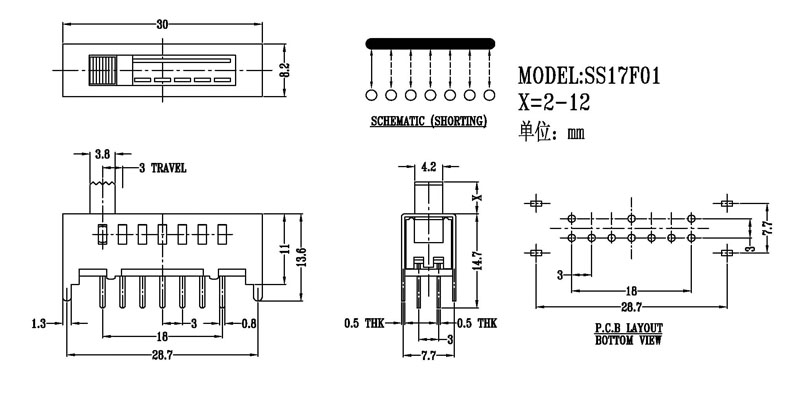 撥動開關主要技術參數(shù)/Slide Switch Main data