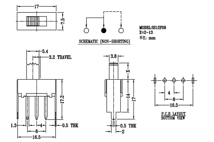 撥動(dòng)開(kāi)關(guān)主要技術(shù)參數(shù)/Slide Switch Main data