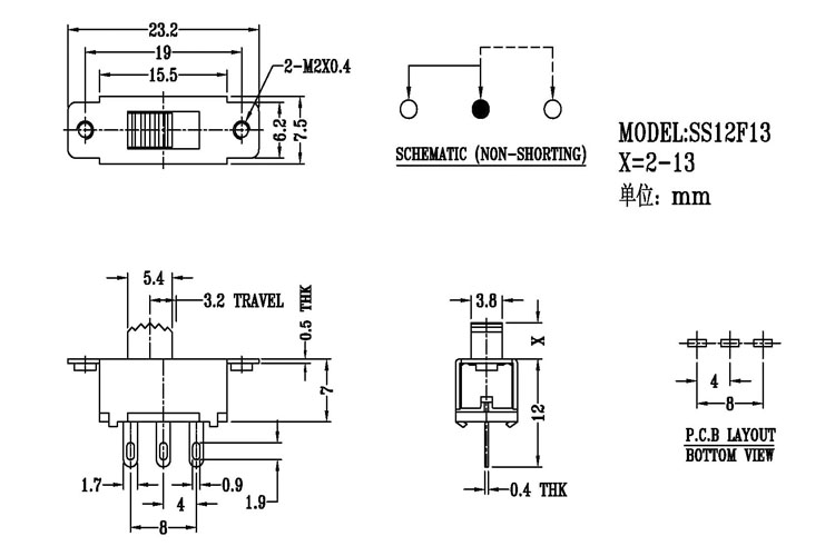 撥動開關(guān)主要技術(shù)參數(shù)/Slide Switch Main data