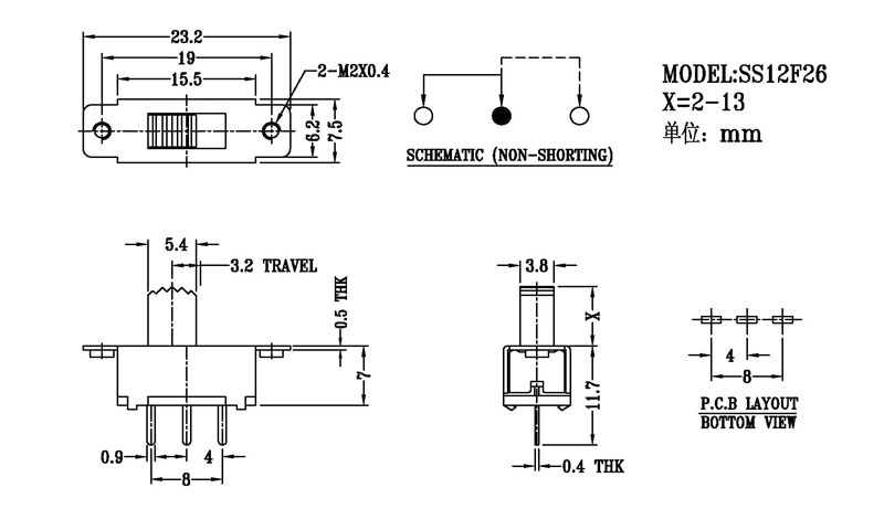 撥動開關主要技術參數/Slide Switch Main data