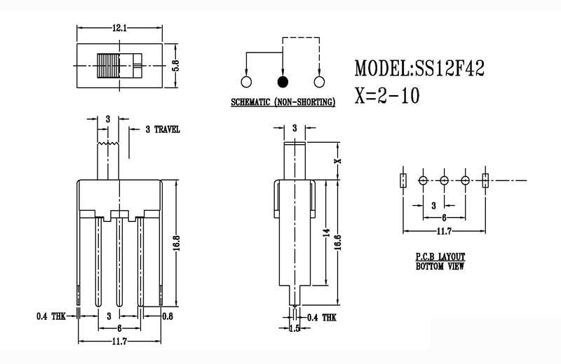 撥動開關主要技術參數/Slide Switch Main data