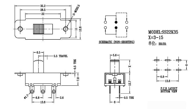 撥動(dòng)開(kāi)關(guān)主要技術(shù)參數(shù)/Slide Switch Main data