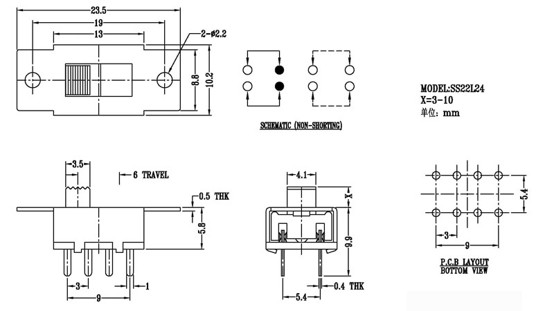 撥動開關(guān)主要技術(shù)參數(shù)/Slide Switch Main data