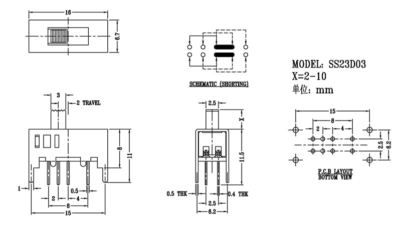 撥動開關主要技術參數/Slide Switch Main data