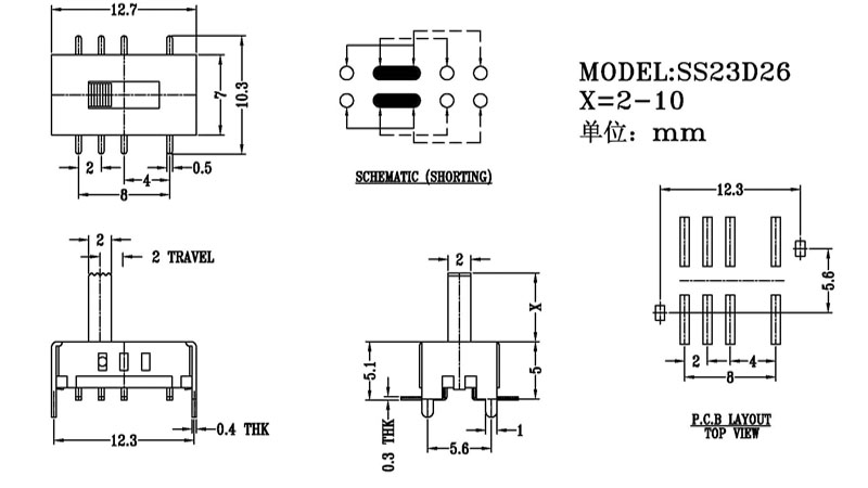 撥動開關主要技術參數/Slide Switch Main data